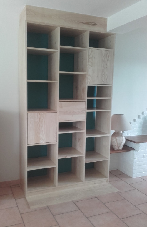 Réalisation d'une bibliothèque en frêne massif, Aigné (72)